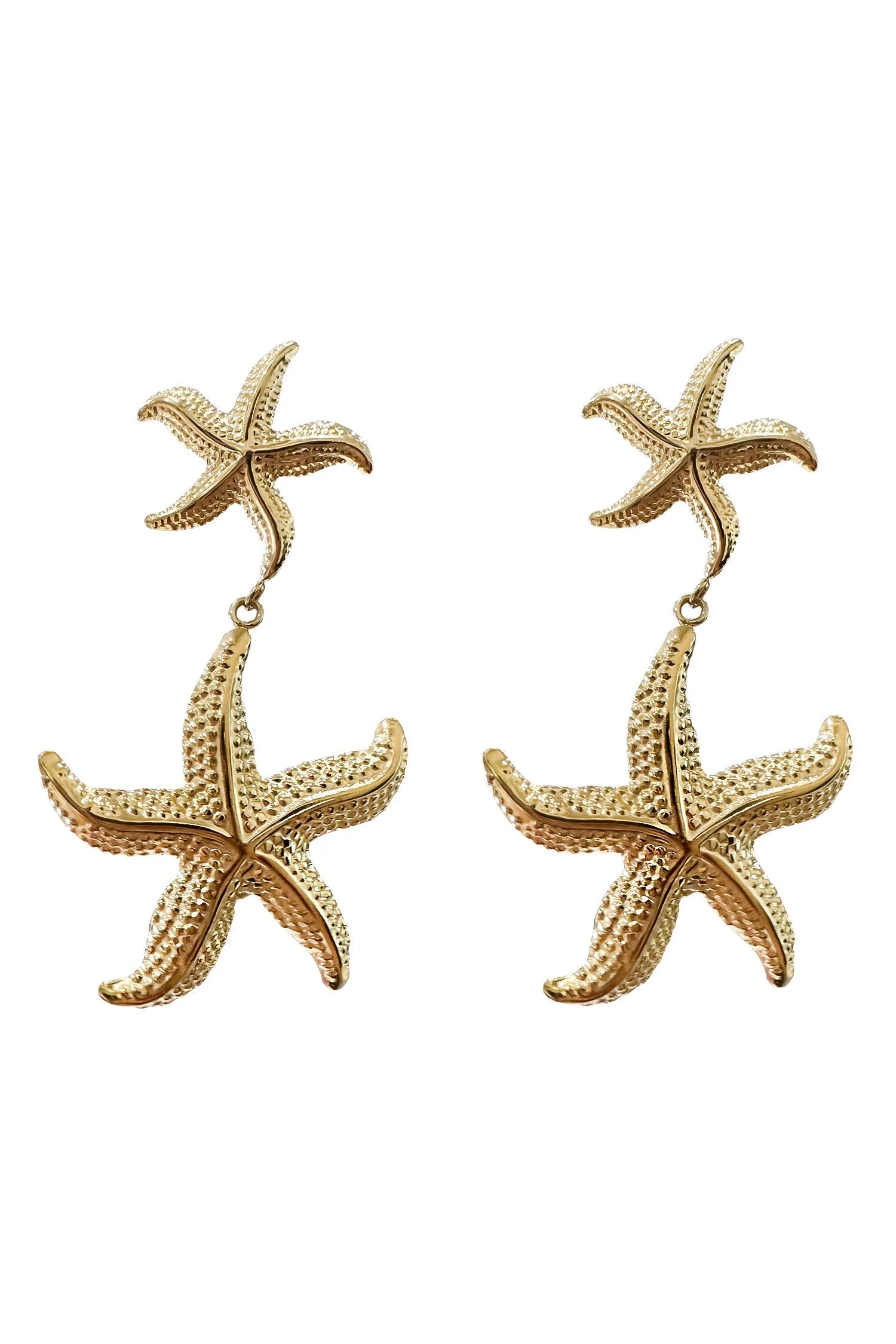 The Adira Gold Starfish Earrings will be a sweet addition to your look. This starfish is crafted from textured gold hardware. You can pair this with any look to add a youthful touch.Â