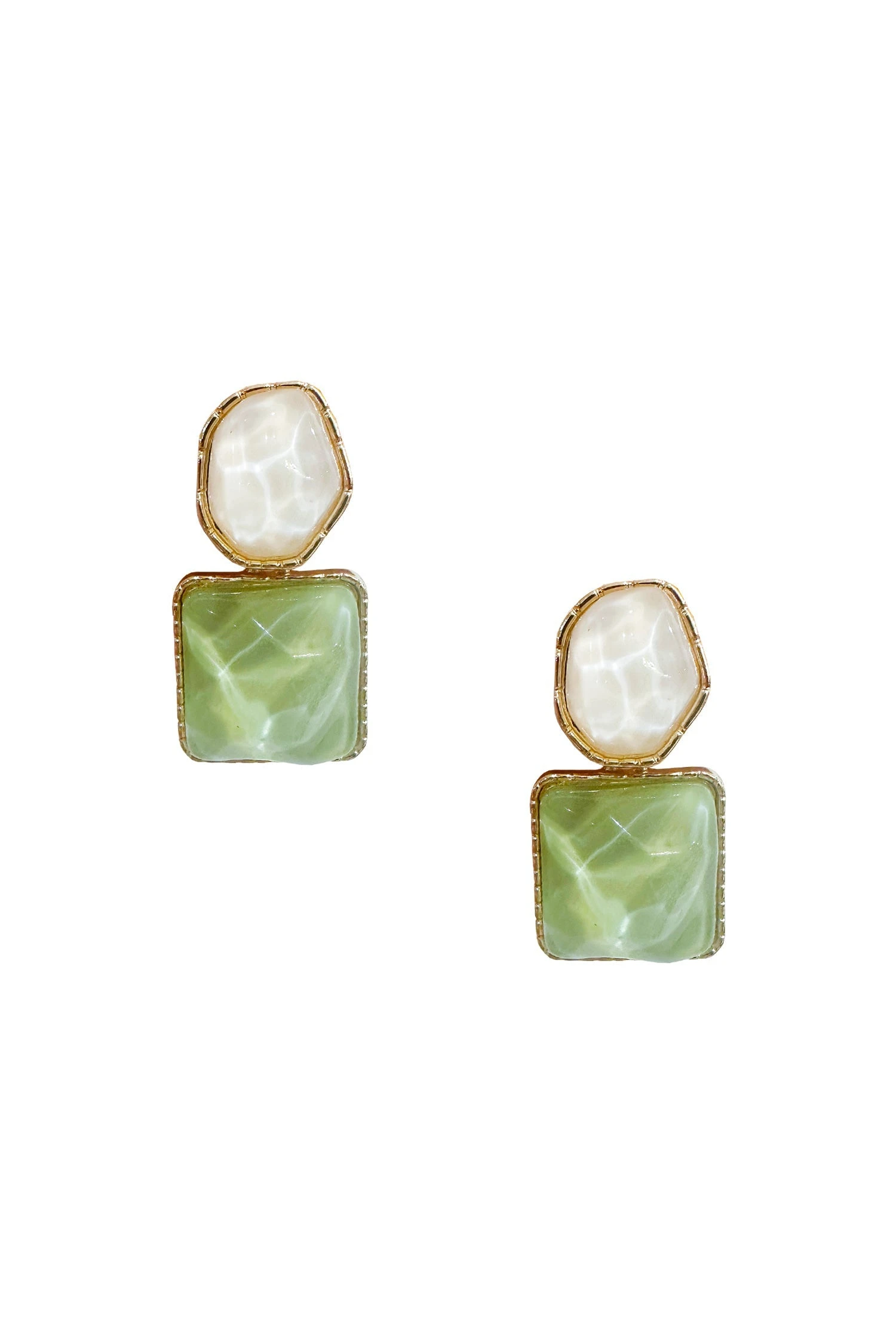 The Cellina Drop Earrings add personality to your favourite ensemble. Vibrant in colour, these earrings feature a pearl diamante encrusted stud and a sage toned gem.