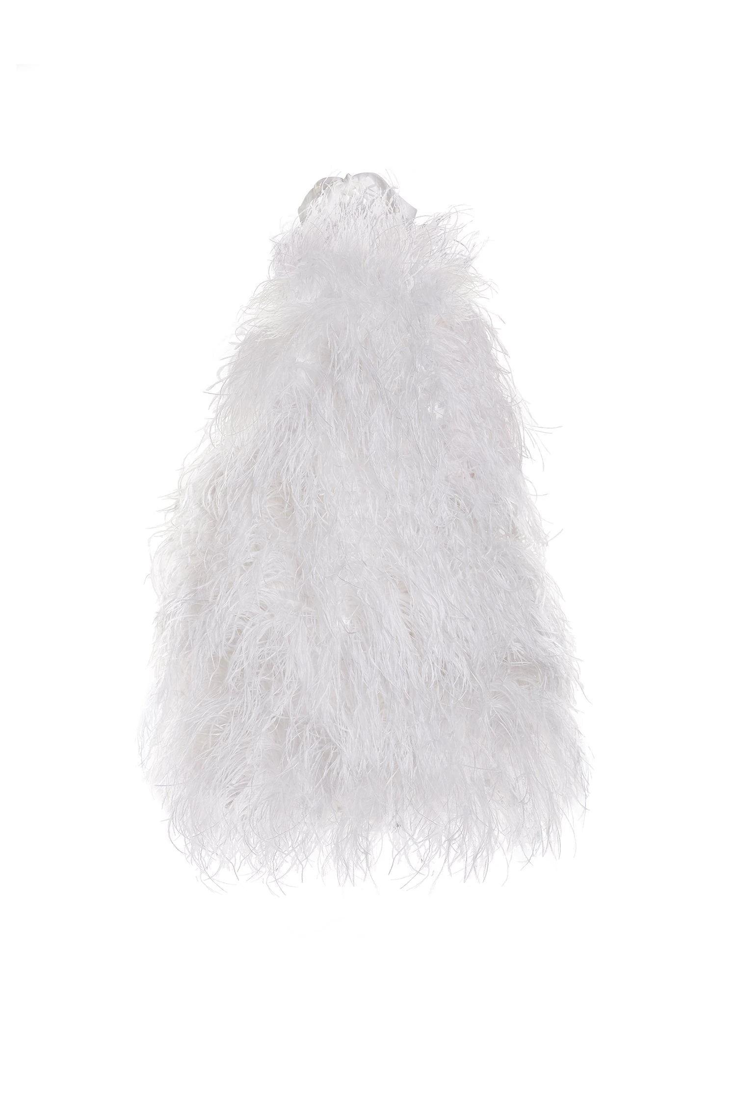 Layered feather fabric, lined with a satin skirt, satin halter neck, back zip