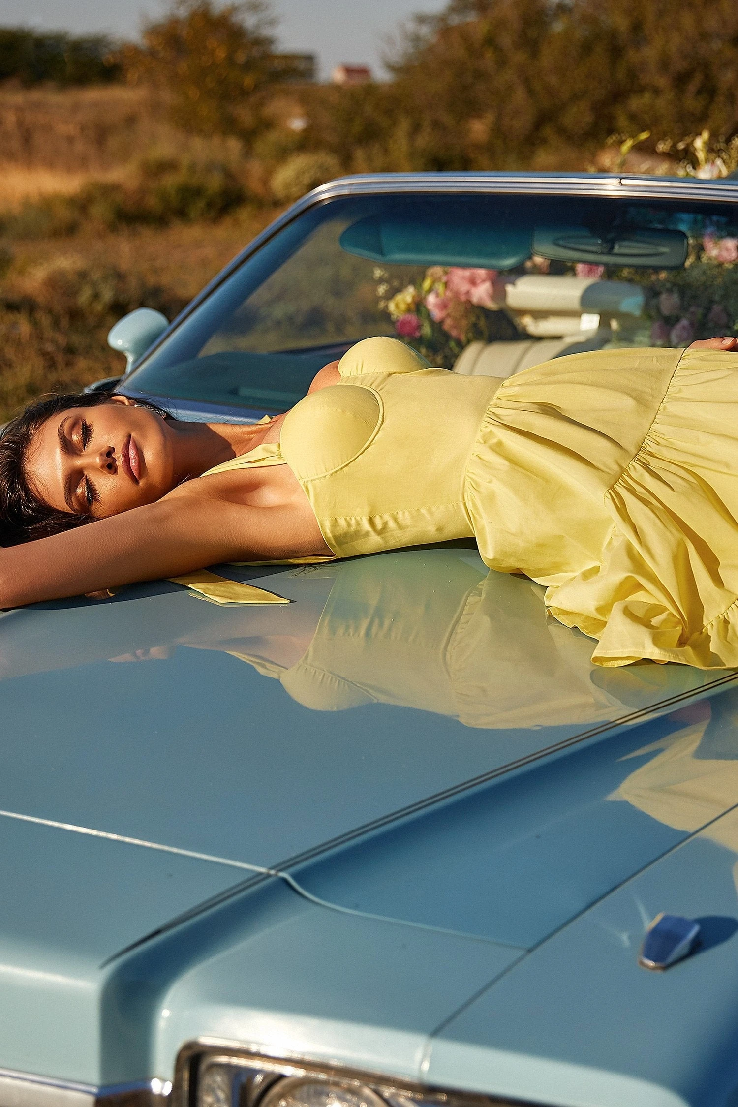 The Nalani Dress is the dreamiest little yellow dress. Features an a-line silhouette with built-in bustier, tie-up straps &Â is made from sunshine yellow fabric. The perfect day dress.