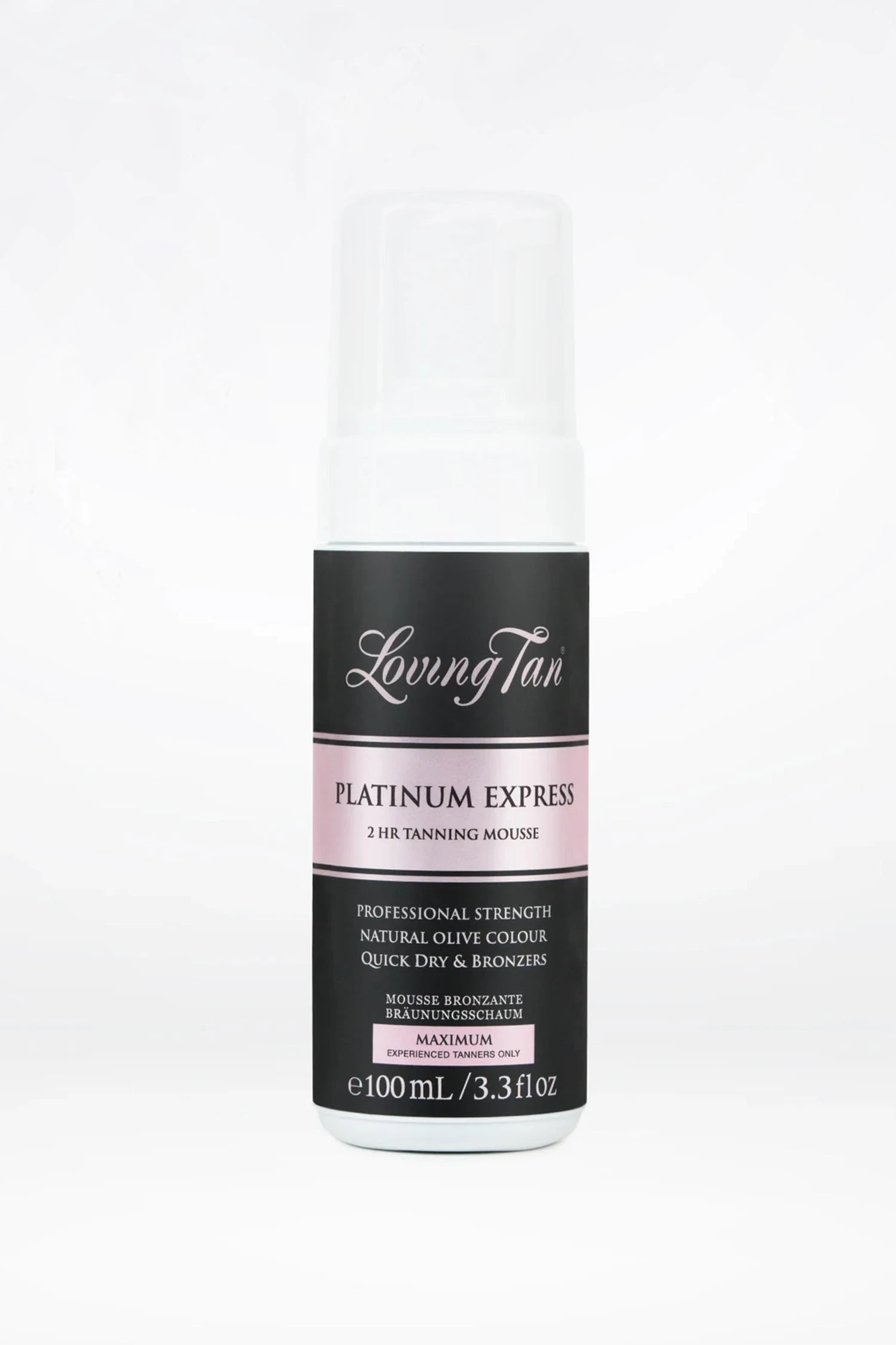 Made by tan lovers for the ultimate tan lover, Loving Tan Platinum 2 HR Express Mousse is our DEEPEST, DARKEST shade, specially designed to give you MAXIMUM tanning results in minimal time. This professional strength formula provides you with an immediate colour, while developing into a deep, dark and natural-looking tan which can be rinsed off after 2 hours and will continue to develop and deepen in colour for up to 24 hours. The colour guide technology ensures an easy streak-free application, every time.Â
