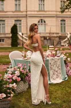 The Selah Set will elevate your event wear with its beaded glitter fabric, diamante waist ties & bodycon silhouette. Baring an exposed midriff, back slit, and straight neckline, this set will capture all the attention.