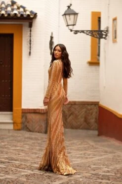 The Zeina Dress will reinvent the modern woman with its plunging neckline, voluminous kimono sleeves, and braided belt. Fitted at the waist and falling to an a-line silhouette, this maxi dress is rendered from a patterned satin fabric in a vibrant red hue.